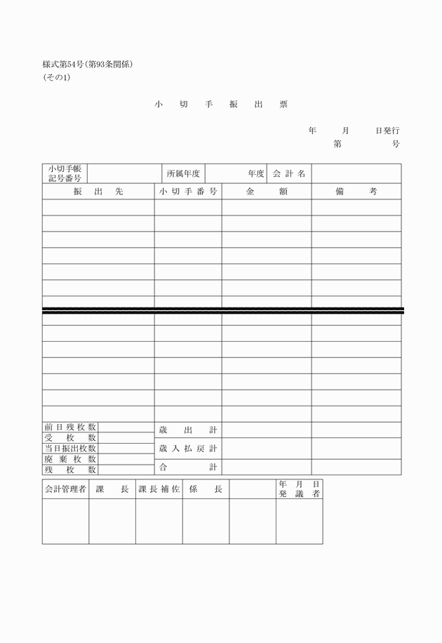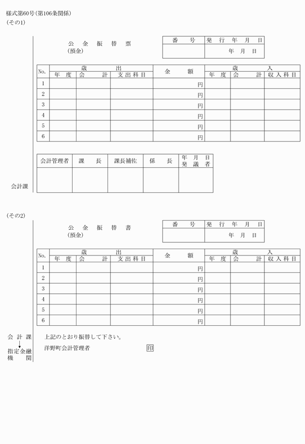 第4条 会計管理者等は、次に掲げるものに使用する公印及び職員の照合印の印影を印鑑票(様式第1号)により、あらかじめ指定金融機関及び指定代理金融機関に送付しておかなければならない。