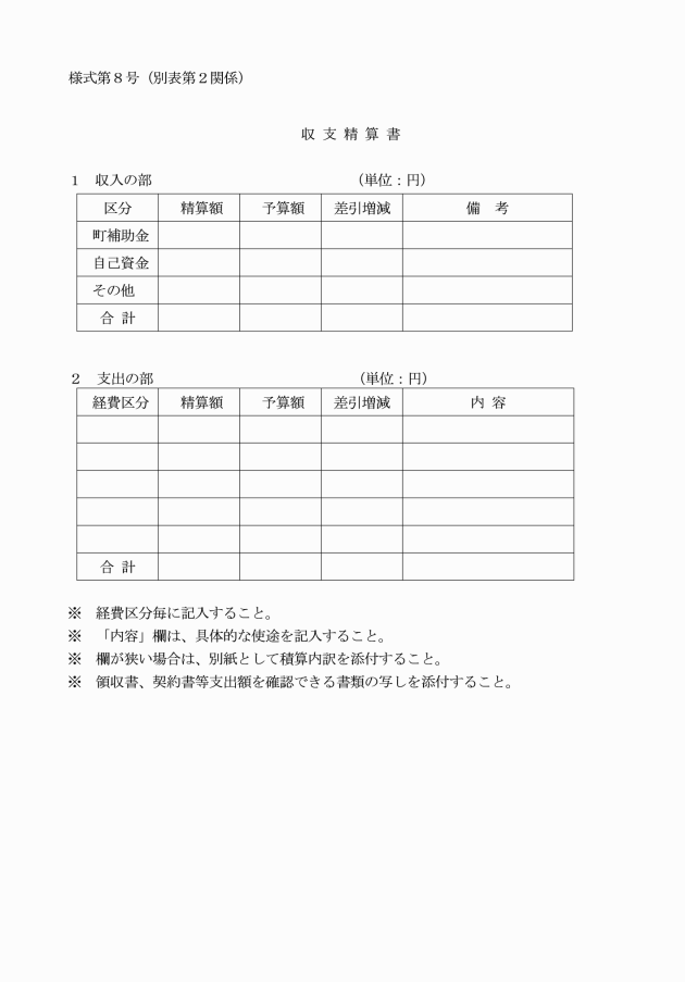 1 収支精算書 | 第8号 | 1部 | ||